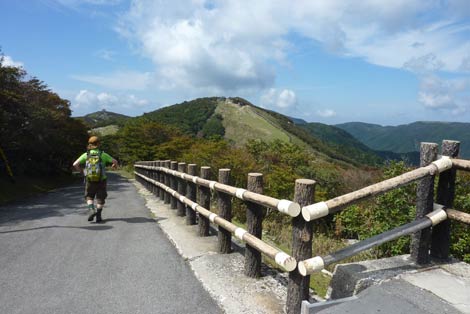 遊歩道をショートカットしてスキーゲレンデを下る |