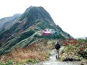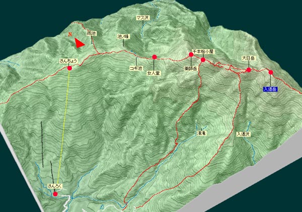 | 行程&所要時間 長野市内から(十日町経由)八海山スキー場ゴンドラ駅まで約3時間30分です。 ゴンドラ山頂駅発 8:11 〜 女人堂 9:00 〜 千本檜小屋 9:50 〜 大日岳 11:40(昼食) 大日岳発 12:50 〜 迂回路経由 〜 千本檜小屋 13:35 〜 女人堂 14:15 〜 ゴンドラ山頂駅着 14:50 |