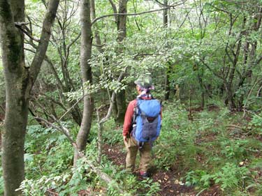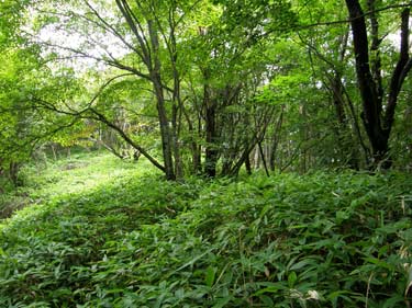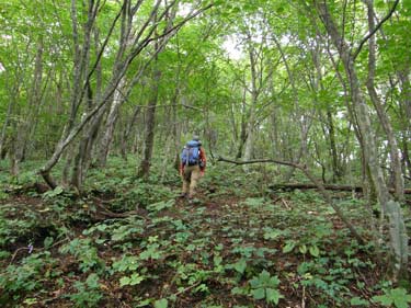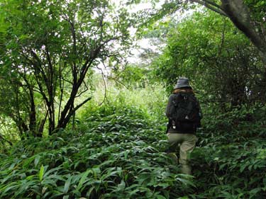 | 一歩踏み出しても二歩後戻りしてしまうほどの急登だ | 最後の藪漕ぎ | |||