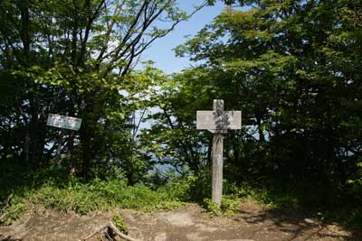 ・獅子岩の頭などの標柱があるため群とする)の右をすり抜けて氷妻山を目指す。 三等三角点が置かれた