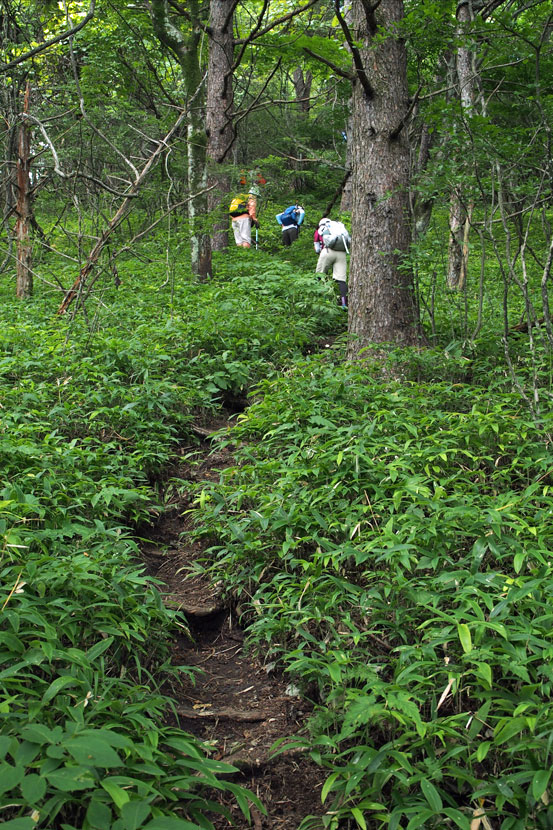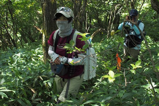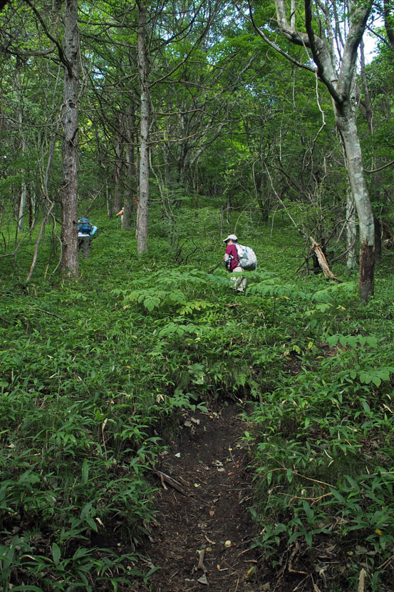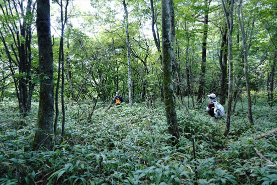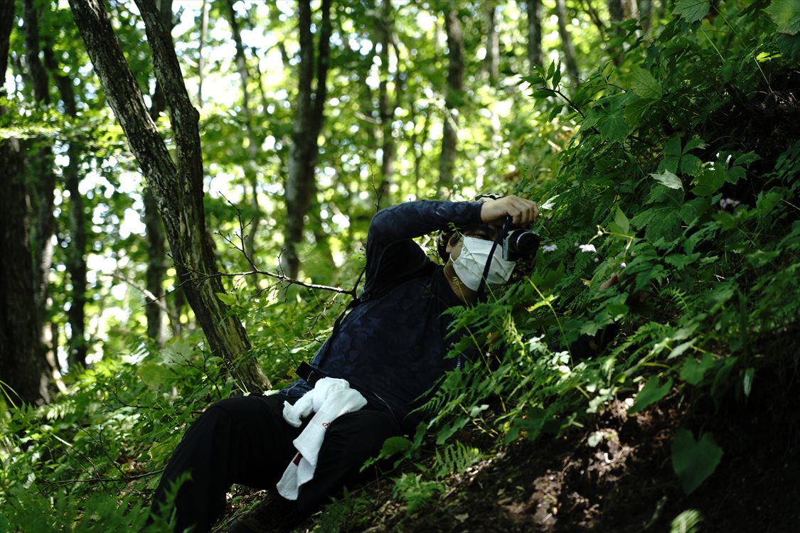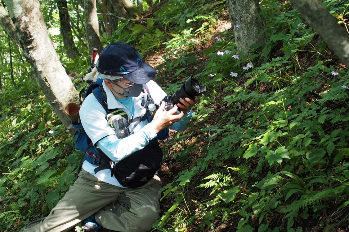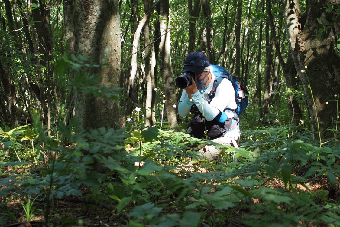 | 足元で咲くレンゲショウマを踏みつけないよう細心の注意をはらい各々撮影タイムに突入 | ||||