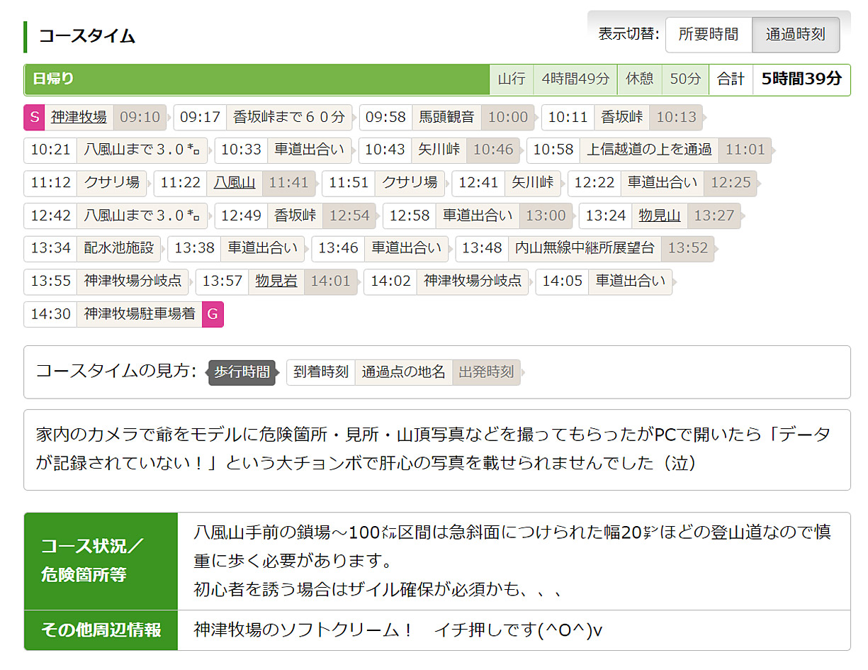 | 《八風山コースタイム他》 写真撮影時間20分〜100分含む |