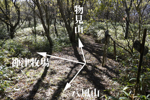 | 物見岩から神津牧場分岐点まで戻る | 神津牧場へ下山 | |||