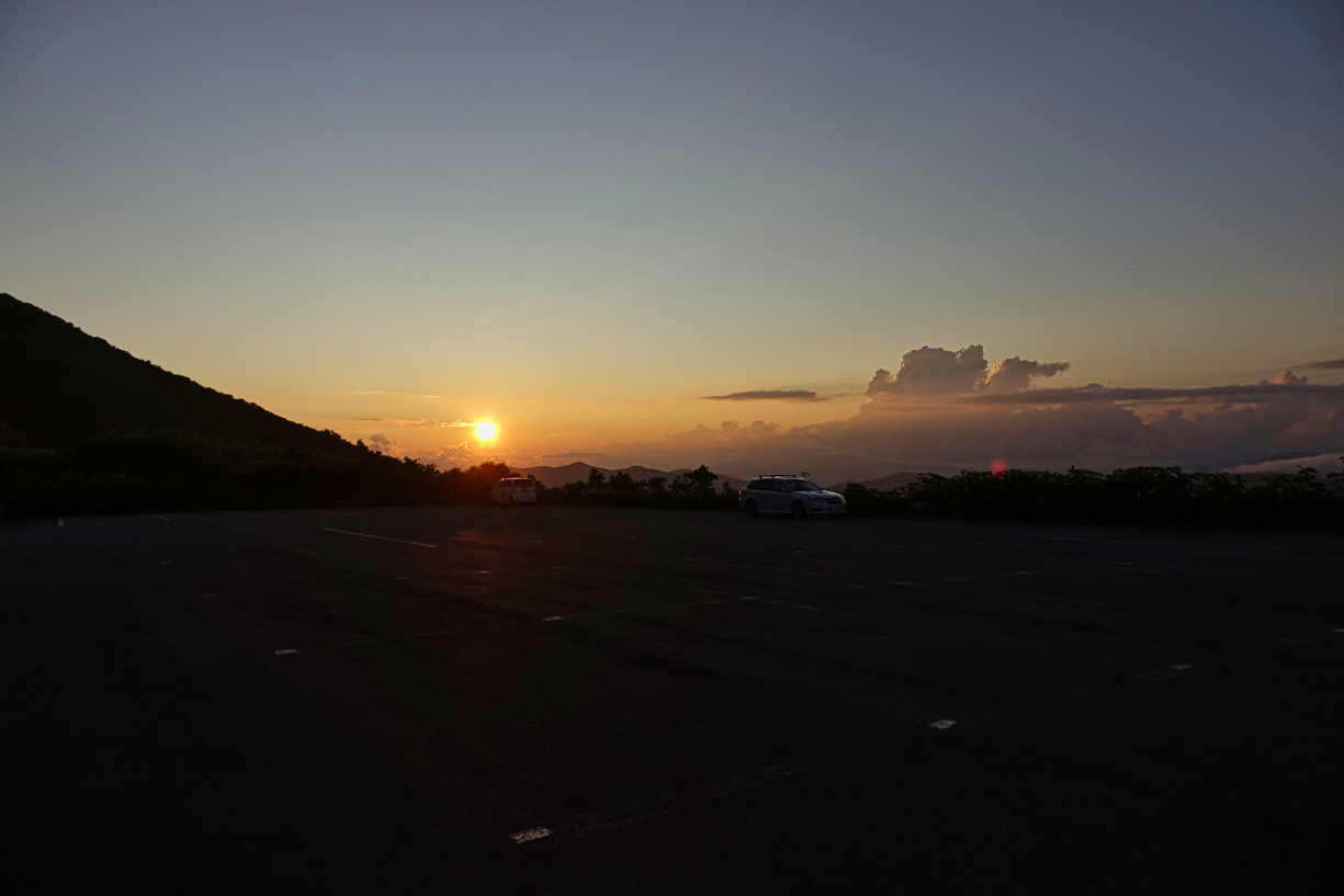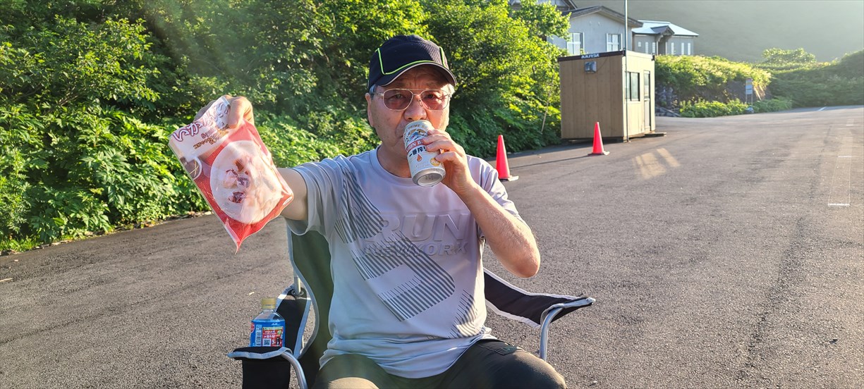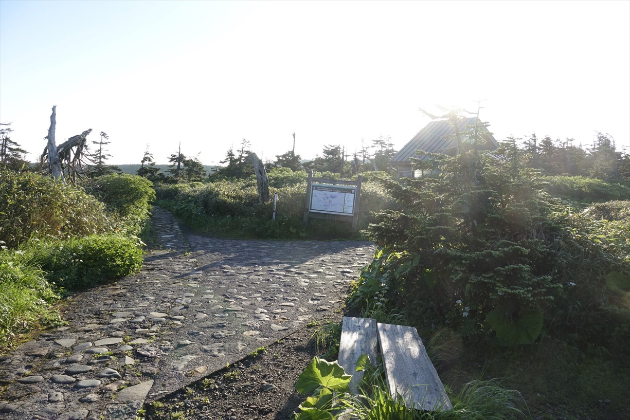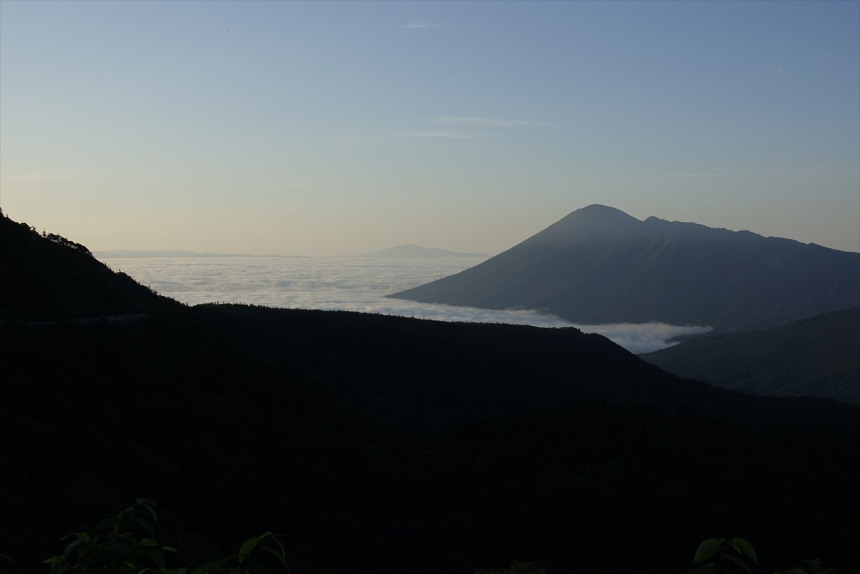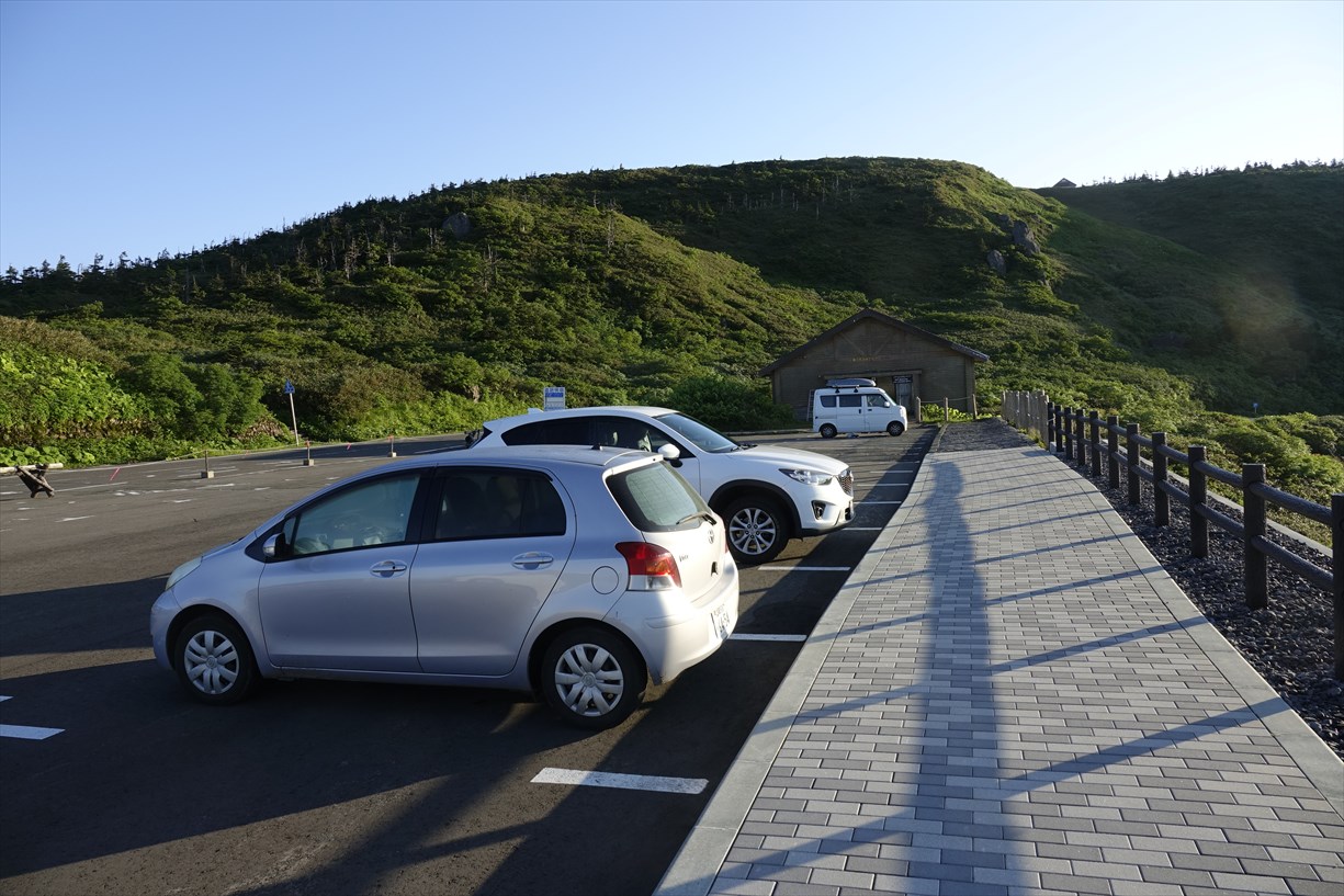 | 秋田駒ヶ岳八合目駐車場にて 17:30~翌日5:30の間のみ林道を利用できます(帰路は定刻運行のバス後尾について林道を下る) |