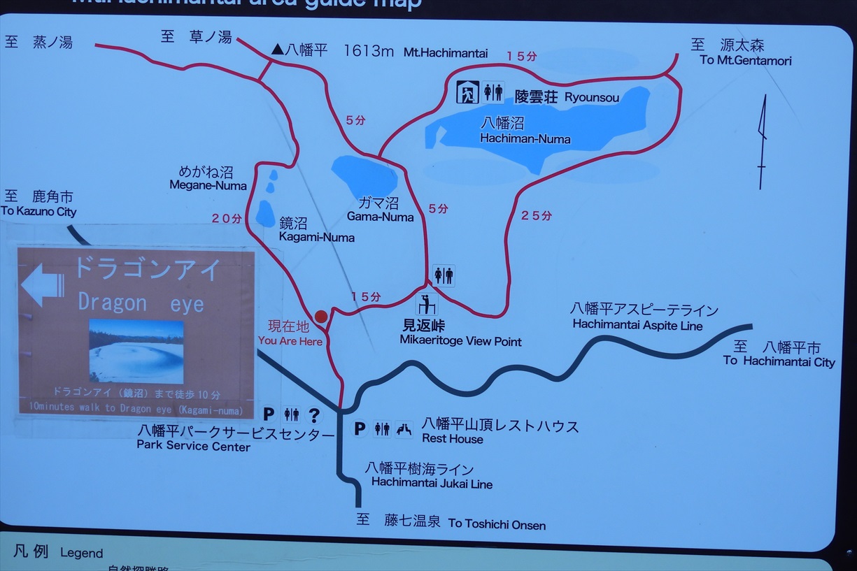 | 見返り峠〜陵雲荘(八幡沼)〜ガマ沼〜八幡平〜めがね沼〜鏡沼(ドラゴンアイ)コースで歩きます | ||||
