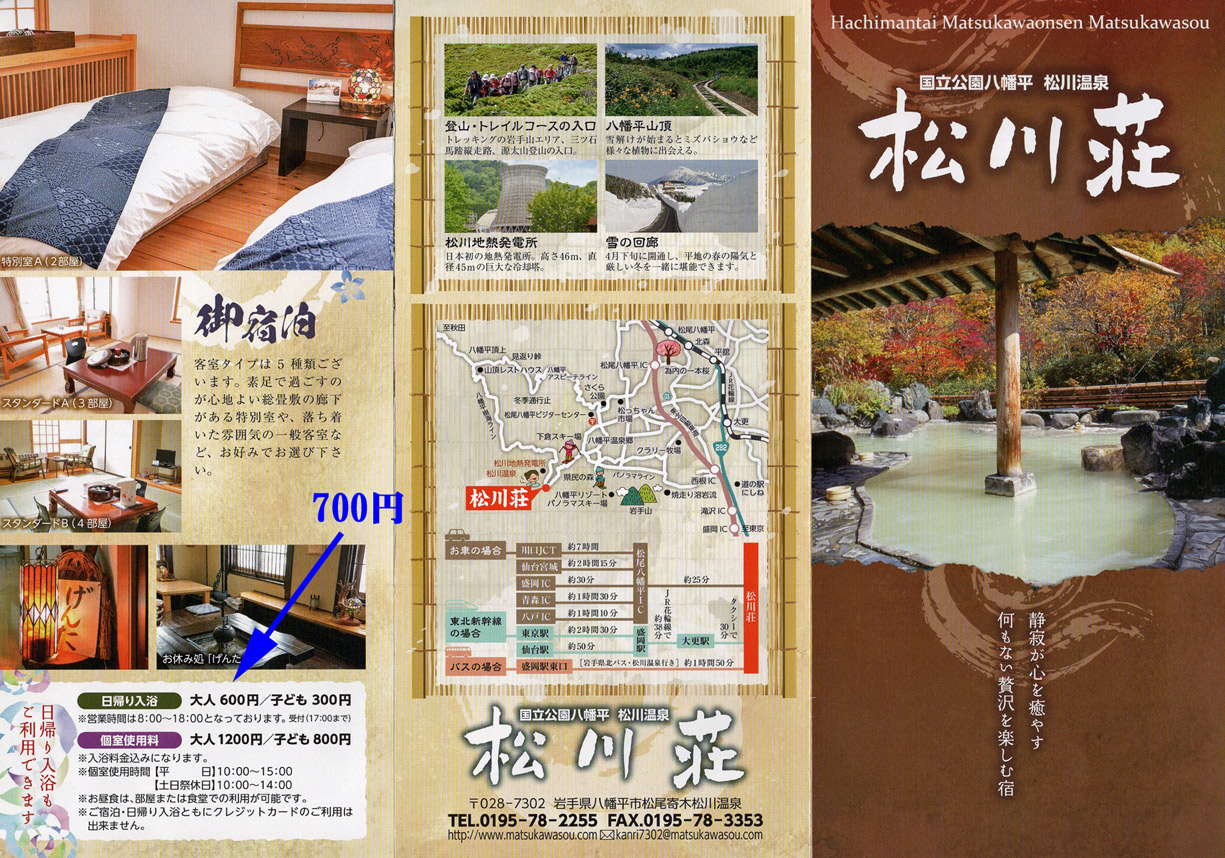 | 八幡平には沢山の日帰り温泉あるが今日は松川荘にきました | ||||