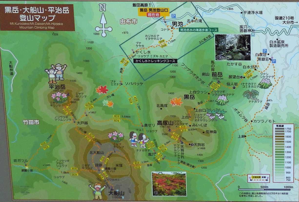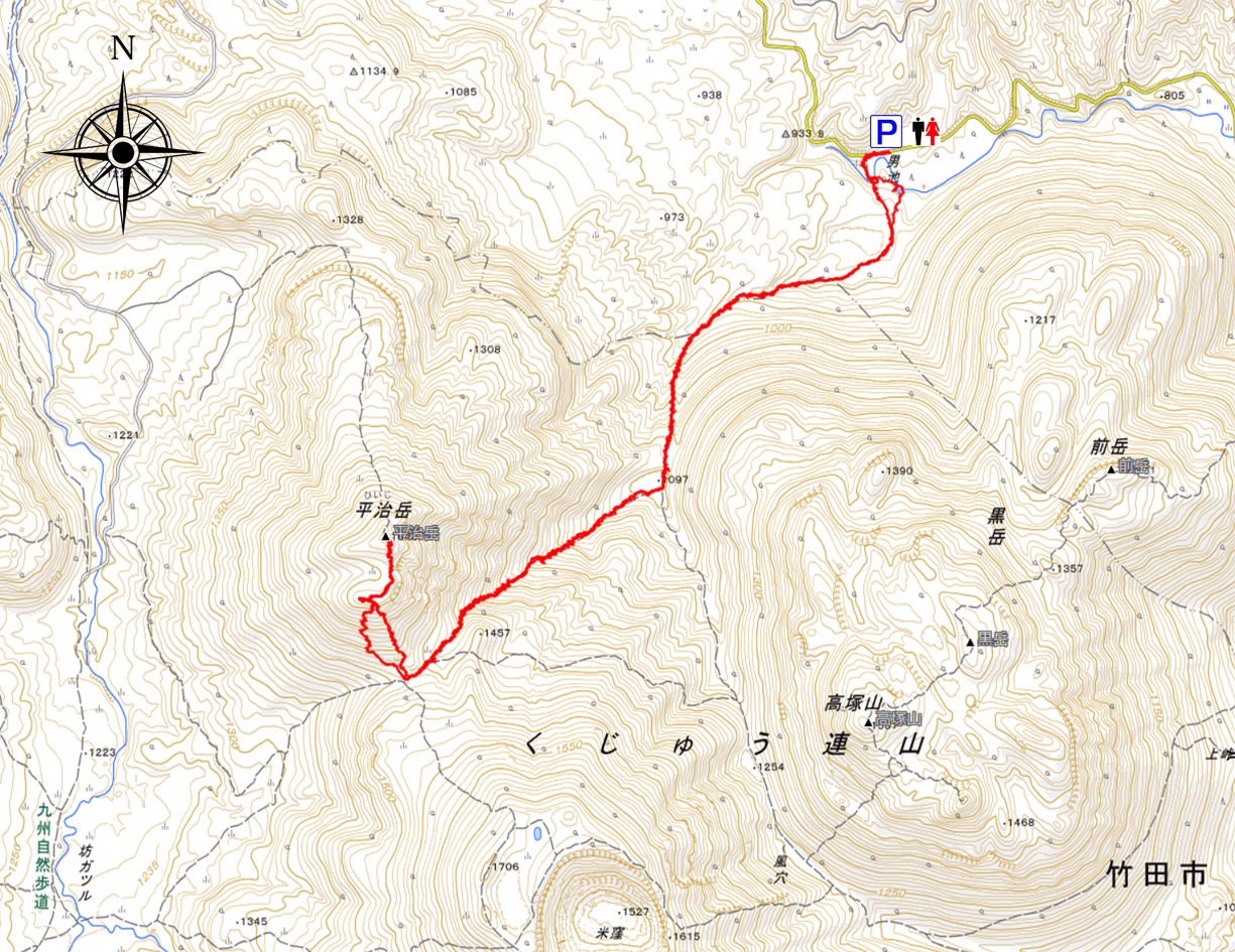 | 平治岳ルート地図 (計曲線 50M 主曲線 10M) |