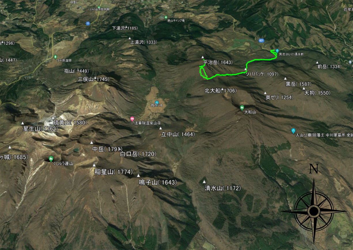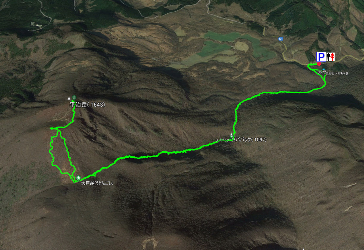 | 平治岳鳥瞰図 ヤマレコ⇒https://www.yamareco.com/modules/yamareco/detail-4383949.html |