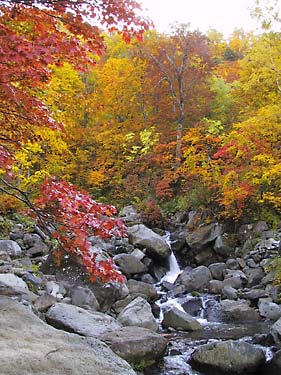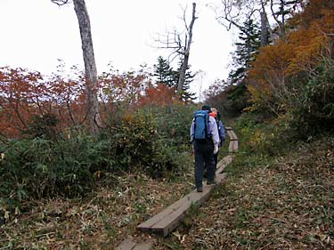 夏はブナや広葉樹が新緑のカーテンとなり、秋は色鮮やかな紅葉が見事な登山道だ。