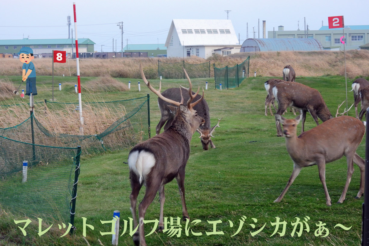 | 鹿をメインに撮ってしまったが、鹿に混じって悠然とゴルフやっている人達がいてビックリ! | ||||