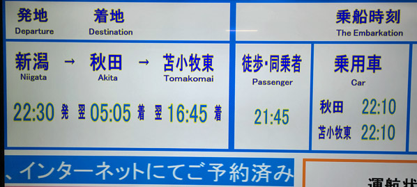 | 9/26 敦賀港発苫小牧行き新日本海フェリー 新潟港から乗船 | ||||