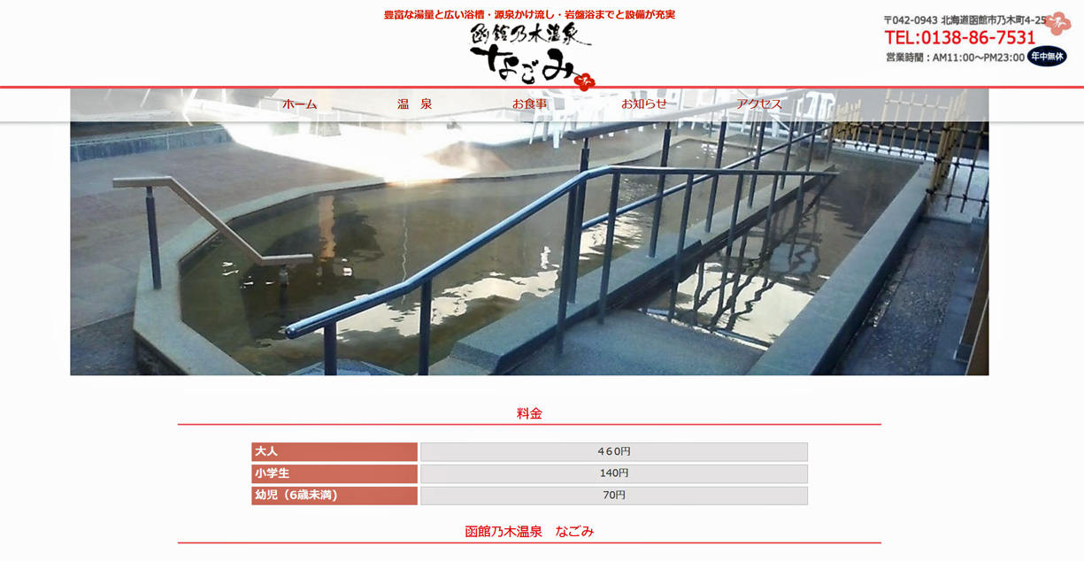 | 函館乃木温泉『なごみ公式ホームページ』 要注意=シャンプー・石鹸は無し・ドライヤー1分10円 |