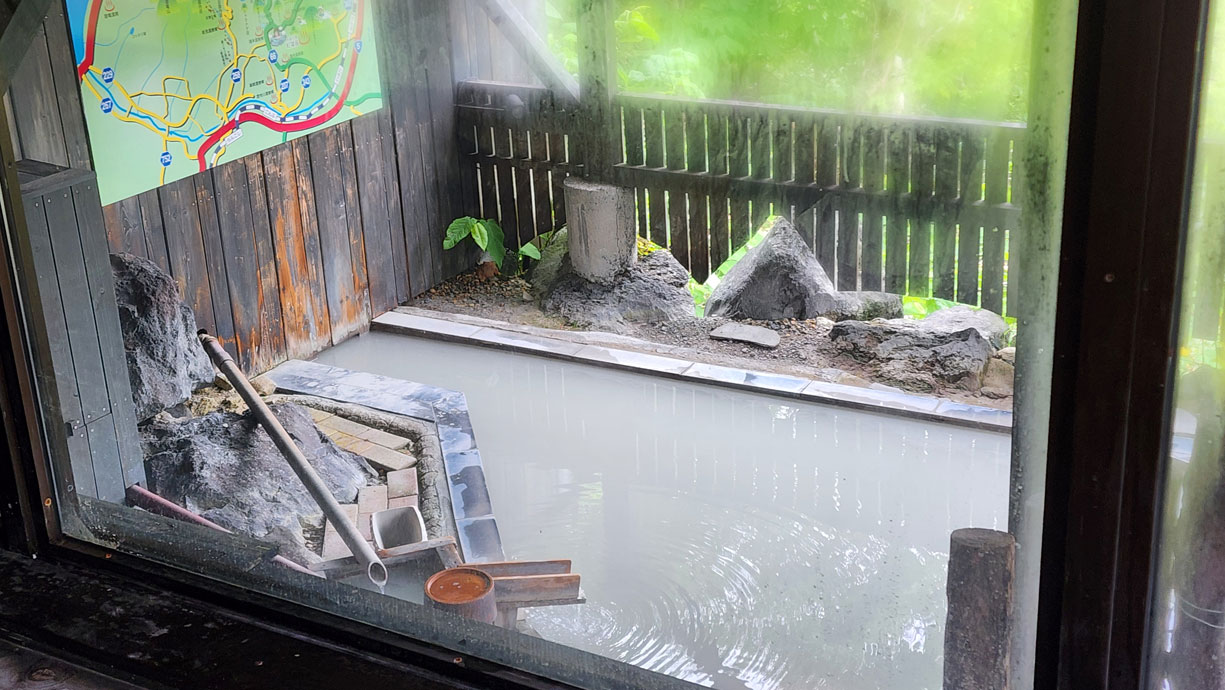 | かき回すと湯花が浮き上がる♪ | ||||