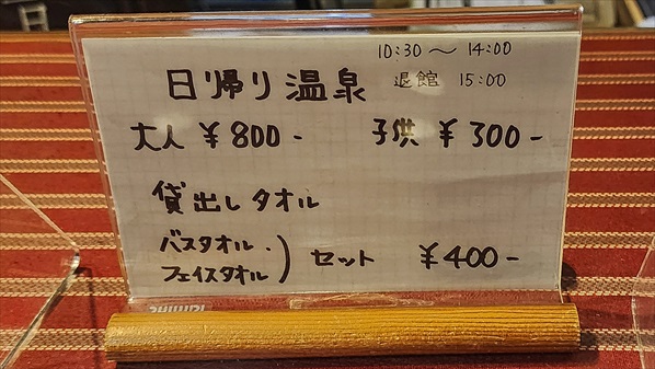 | 入浴料800円 10:30〜14:00 ※人数制限あり | ||||