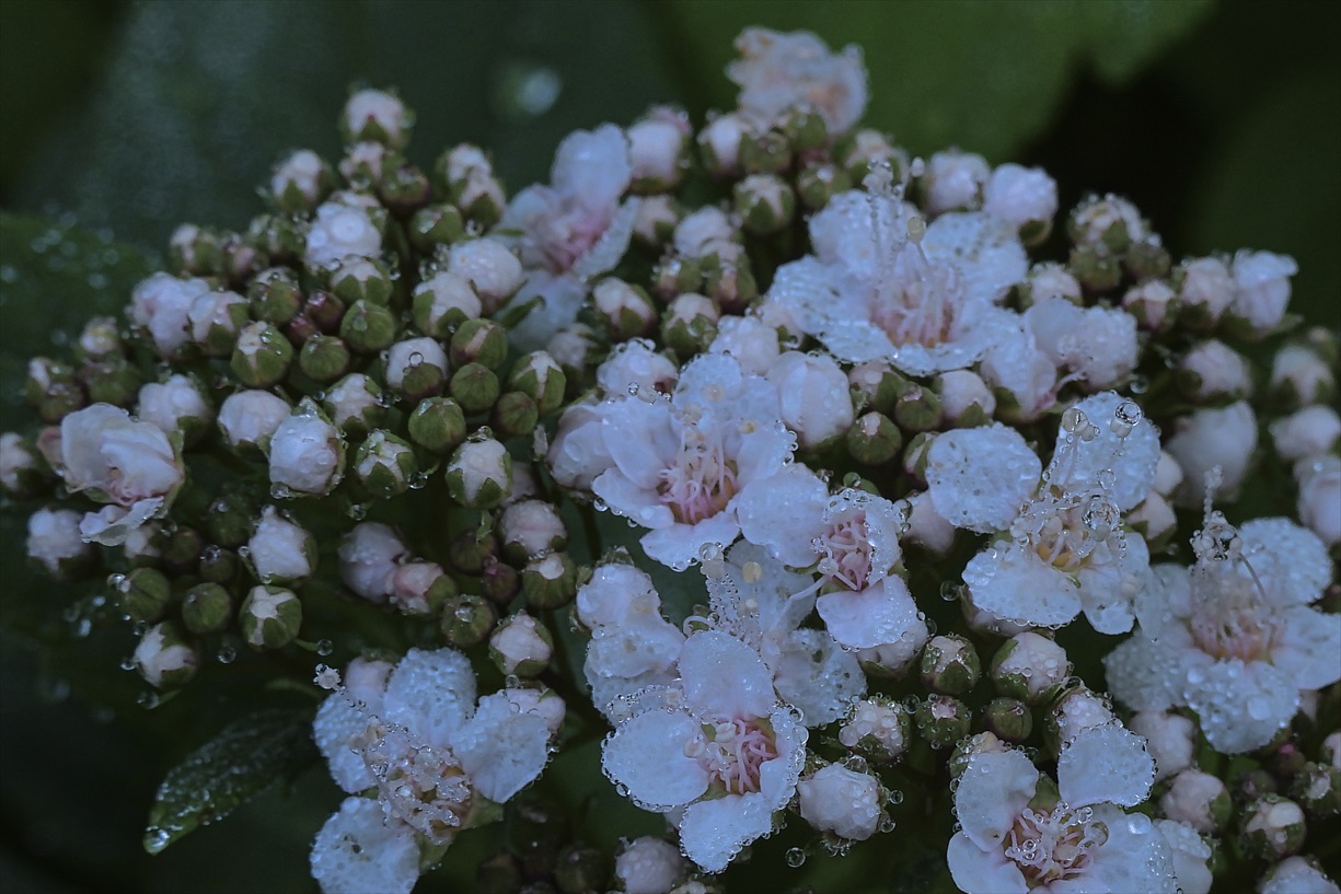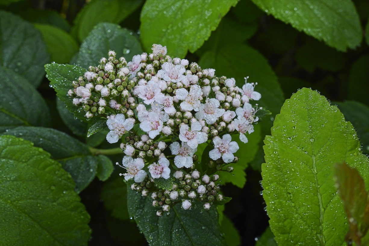 | 朝露をまとうマルバシモツケ♪ | ||||