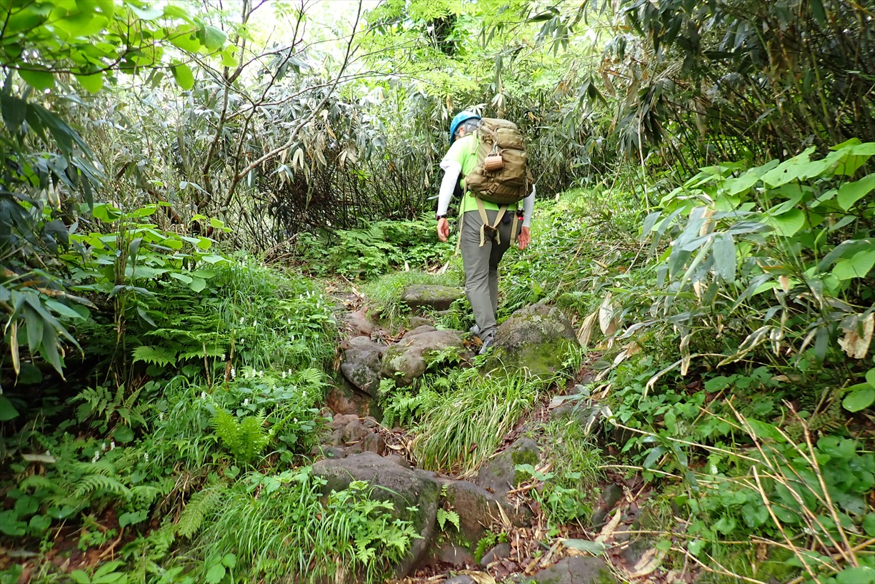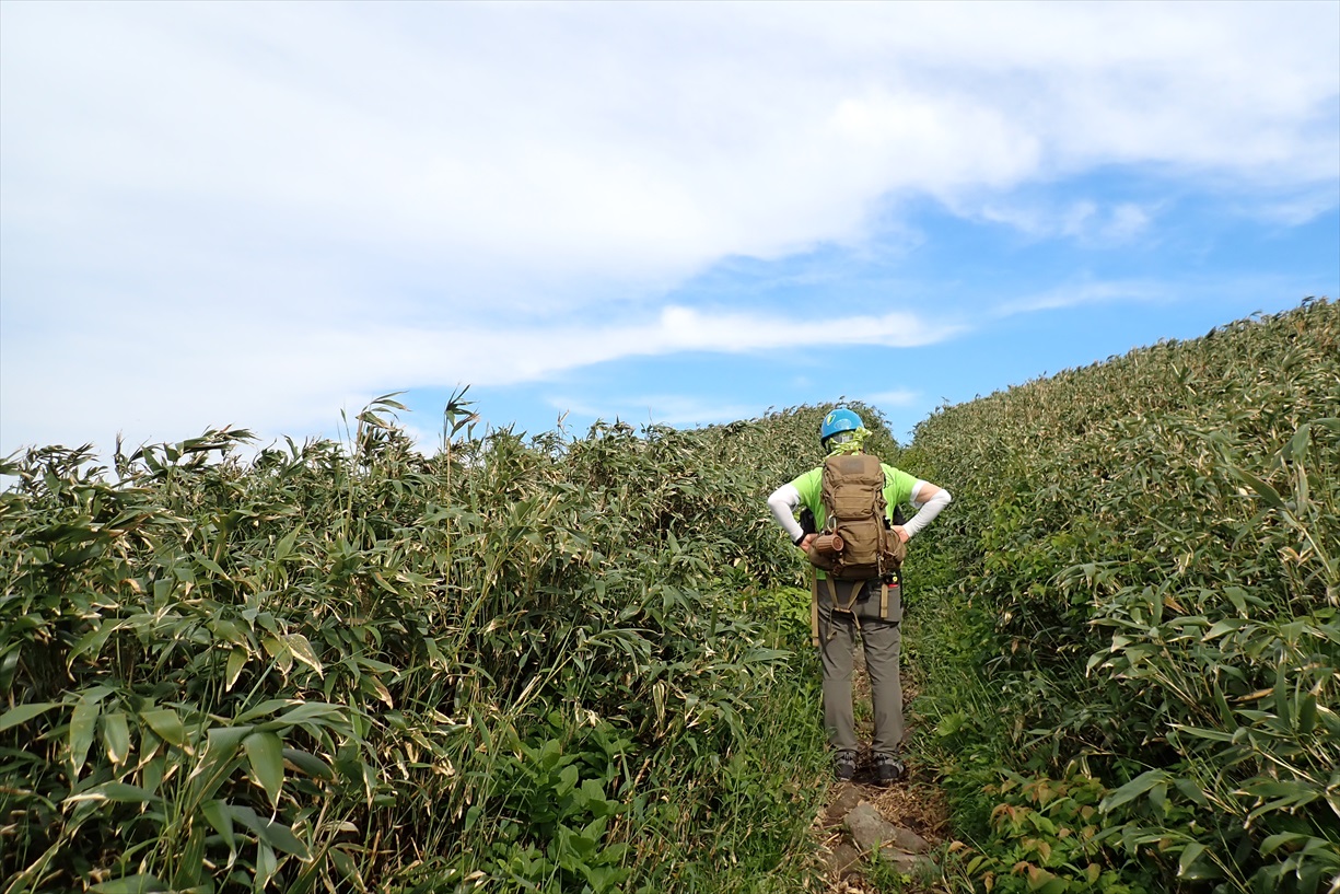 | 登山道の左右はネマガリダケの宝庫♪ 明日帰宅だったら登山そっちのけでネマガリ採り間違いなし(笑) |