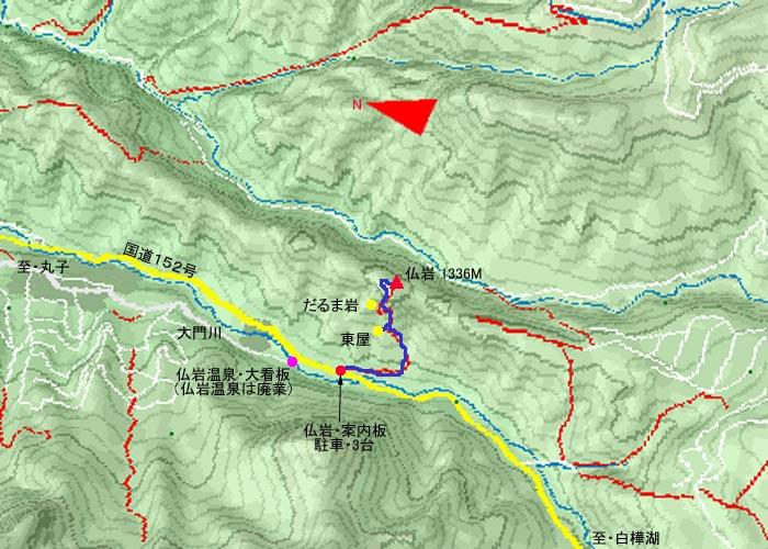 | クリックすると「仏岩・登山口」近辺の 広域地図を見ることが出来ます。 マップコード 468238233 |