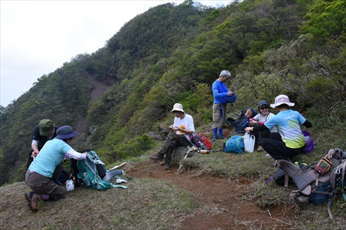 | 位牌岳直下の台地でランチタイム | つるべ落としの滝分岐点で左折 | |||