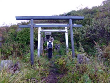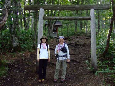 | 南峰直下の鳥居と石祠 | 登りきると飯綱山南峰だ | |||
