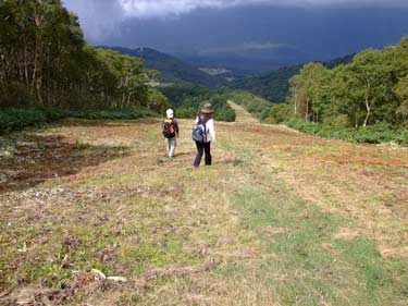 | 鞍部を歩く | 瑪瑙山に架かるスキーリフト | |||