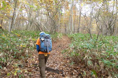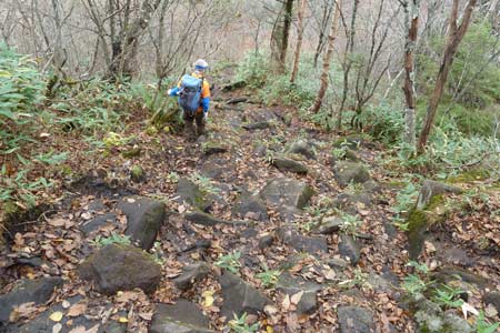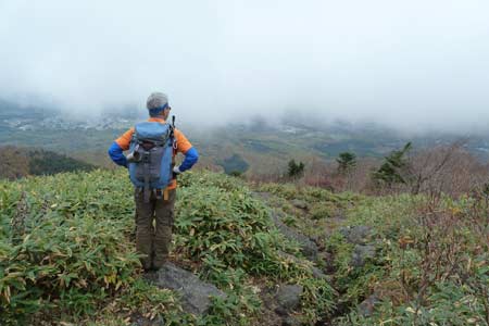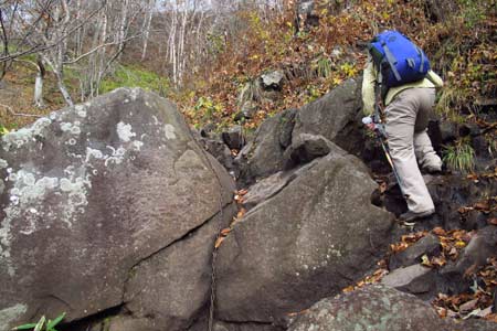 | 北アルプスや戸隠連峰は雲の中 | 石ゴロ地点を慎重に下る | |||
