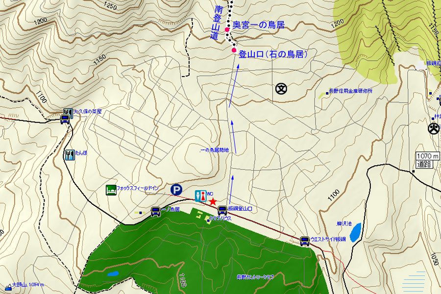 一の鳥居駐車場〜南登山道 拡大図![]() |