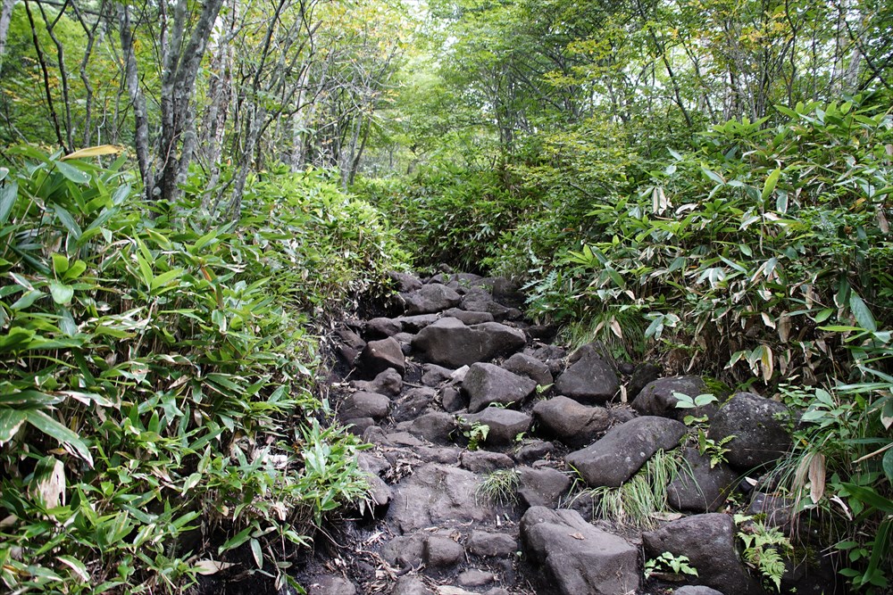 | 天狗の硯岩を通過後はゴーロ道が多くなる | ||||
