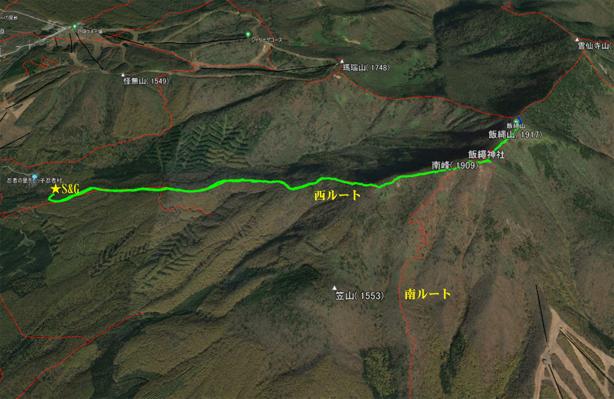 飯縄山西南R分岐点からのパノラマ図解あり |