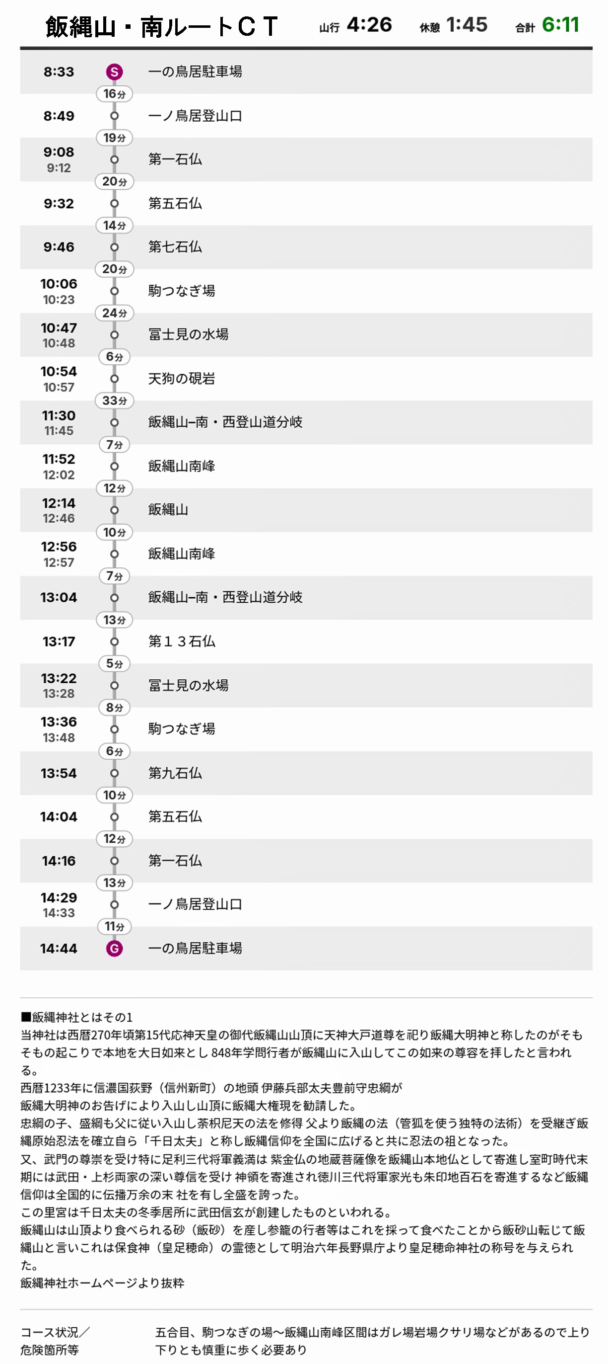 《飯縄山コースタイム他》
