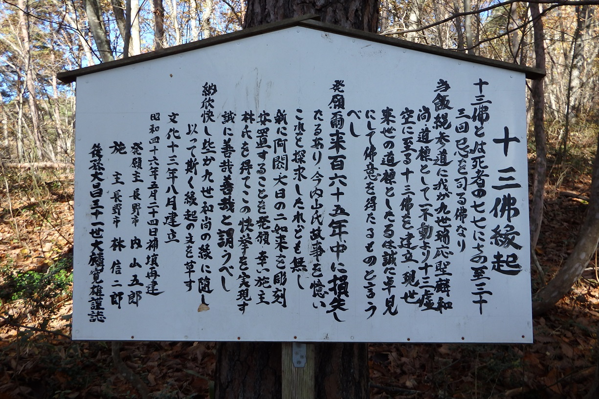 飯縄山南峰まで13体+馬頭観音の石仏が祀られている |