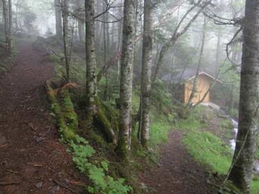 ここから夏沢鉱泉を経由してオーレン小屋までは樹林帯の中をシラナギ沢支流に沿って登山道がのびており、