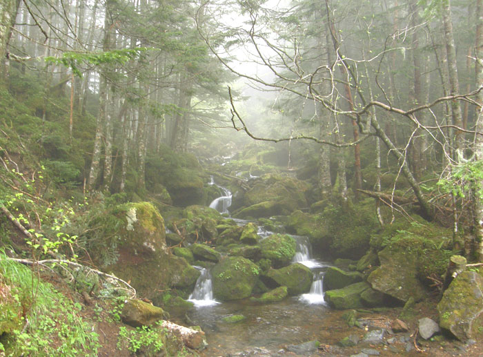 苔むした爽やかな清流と、マイヅルソウ・スミレなど清楚な花々が目を楽しませてくれる。