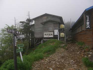 今日はここまでと諦め、悪天候を読み先に引き返された松澤さん親子(失礼)がいる硫黄岳避難小屋まで引き