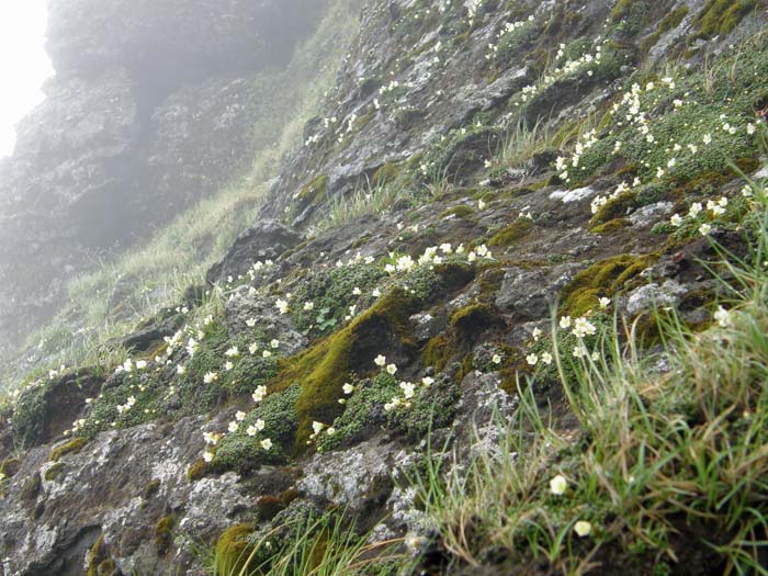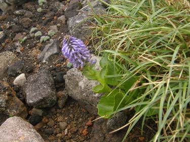 から岩ゴロの急登となるが、イワカガミ、キバナシャクナゲ、岩肌に咲くイワウメの大群落のお出迎えで急坂を