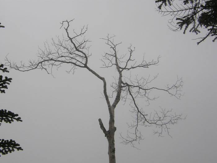 臨んだが、晴れの予報に反して八ヶ岳上空は雲の中・・・時間も早かったので山頂に着く頃は晴れるだろうと