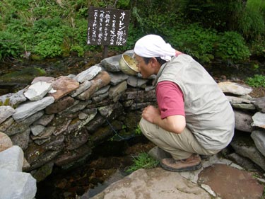 オーレン小屋前のベンチ横には、オーレン強清水と呼ばれる名水が湧出しているので、名水でコーヒータイム