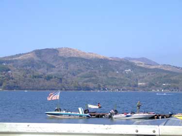 | 右側に石割山と平尾山が見える(山中湖南湖畔より撮影) | ||||