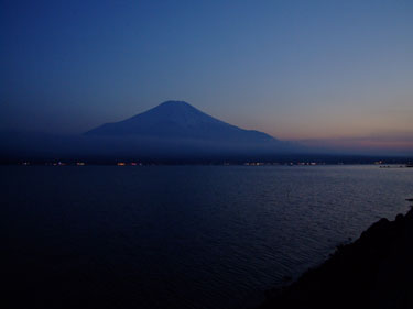 | 山中湖親水公園より撮影 18:07 | 《写真をクリック・期間限定拡大写真》 灯りがともり始める 18:52 |