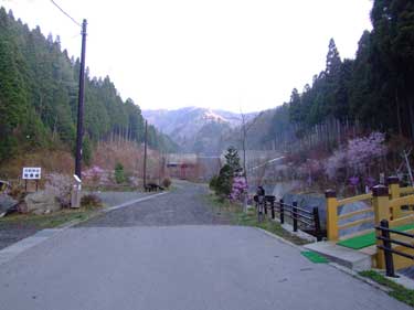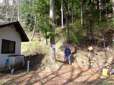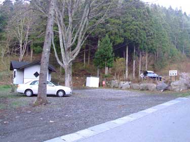 石割山登山口の風景 左・駐車場 正面・石割山 右・登山口 |