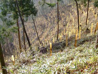 | 踏み後でえぐられた急斜面を平尾山目指して下る | 美保の松原風ロケーション | |||