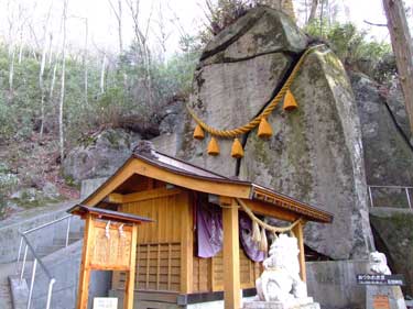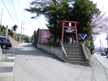 | 413号線を左折して直進 石割の湯手前左側の赤い鳥居が目印 |