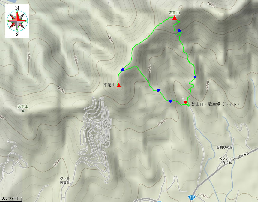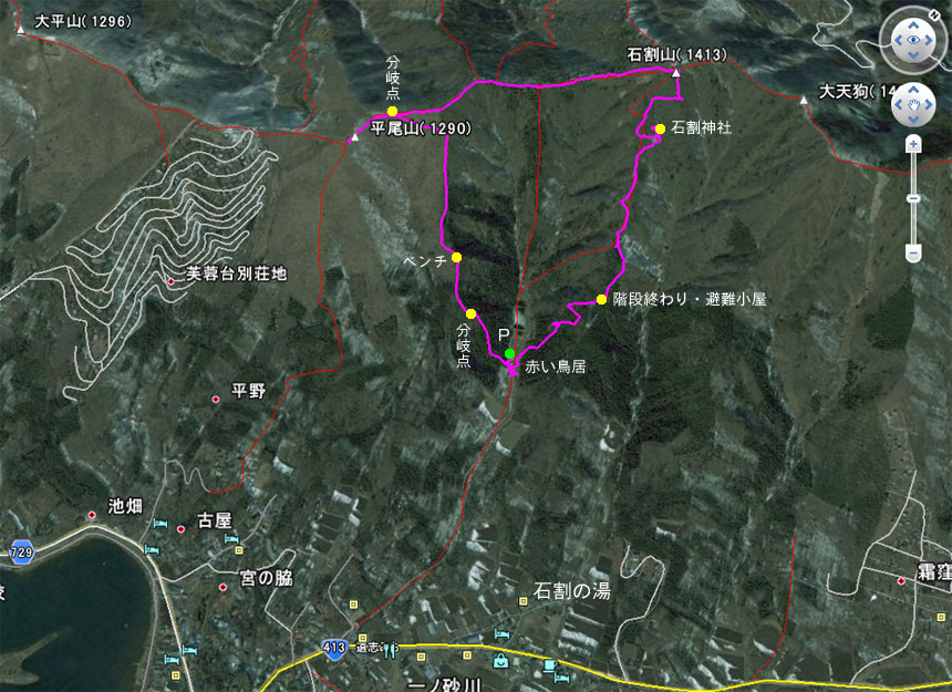 | 石割山&平尾山グーグル鳥瞰図 | ||||