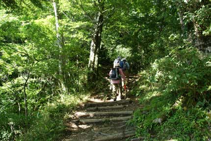 | 八丁(鞍部) ここから標高差約700m・総距離3.2kmの上りとなる |