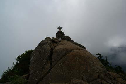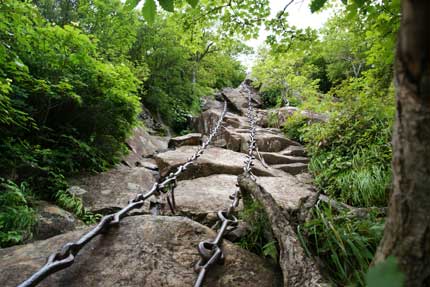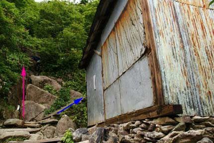 | かつての信仰登山ではクサリ場を汚さないよう、ここで新しい草鞋に履き替えたとつたわる 朝日新聞発行 日本百名山より抜粋 |