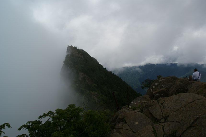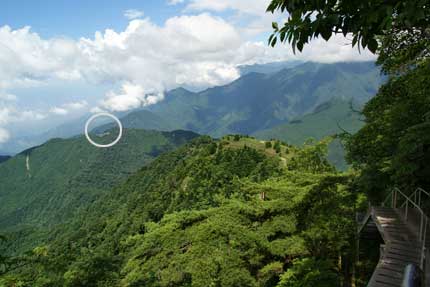 | 天狗岳に向かって祈祷する石鎚山信者 | ||||