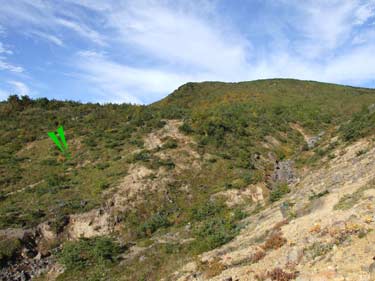 | 右の五色沼撮影場所より山頂方面を撮す | ||||