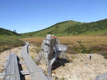 | 鎌沼の奥に磐梯山を望める | ここまで来るとつい早足になってしまう | |||