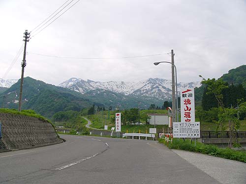 焼山温泉入り口 この道を約500m直進すると 笹倉温泉「龍雲荘」がある。 |