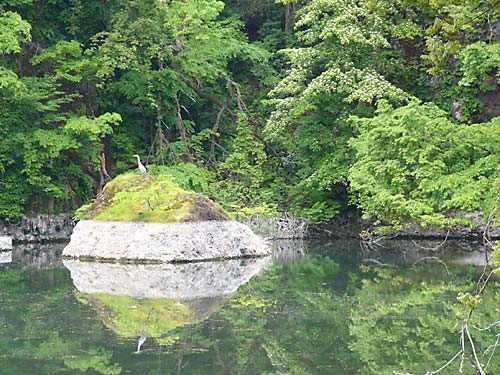 糸魚川市・藤の名所 月不見の池 置物の鷺と思って撮していたら本物でした。 |