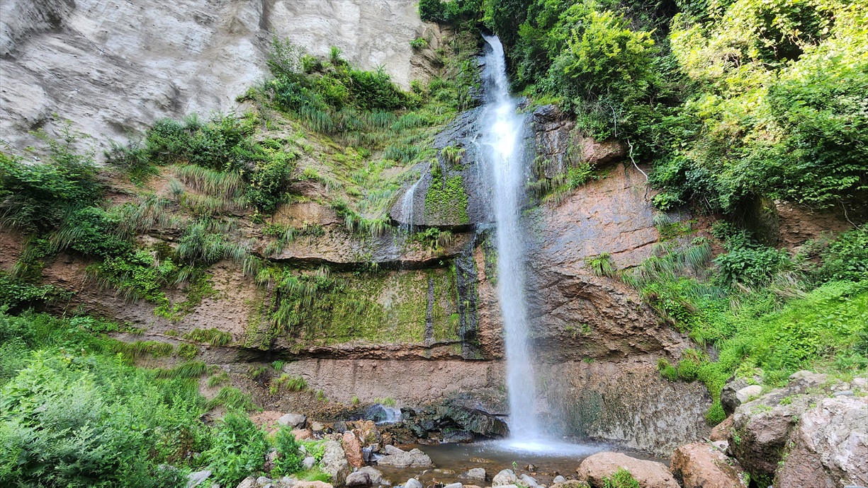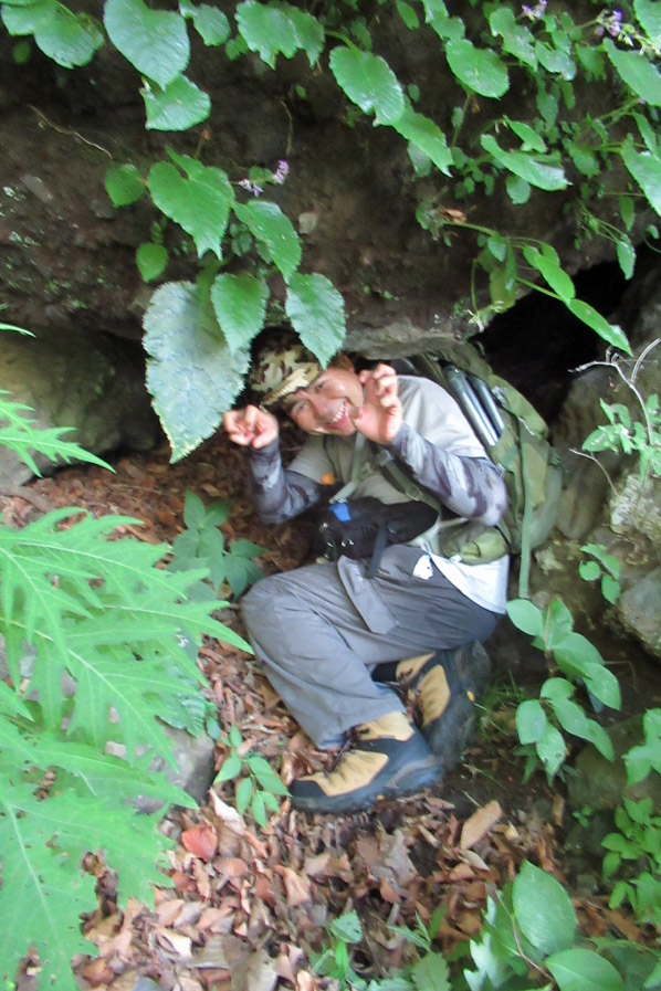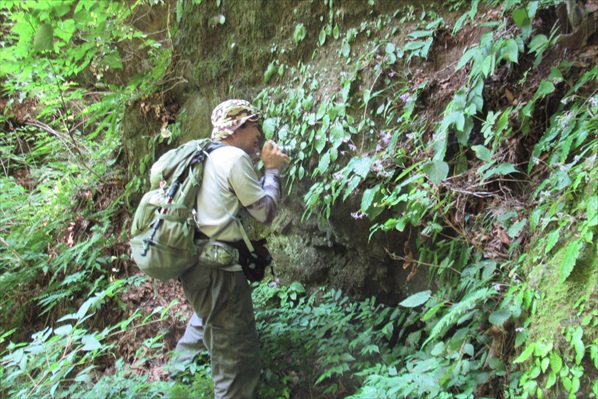 | クサリ場を降りてキツネノカミソリ群生地へ ※吉田類とアシスタント女性が連なって降りていたクサリ場(間違っても真似をしないでくださいね) |